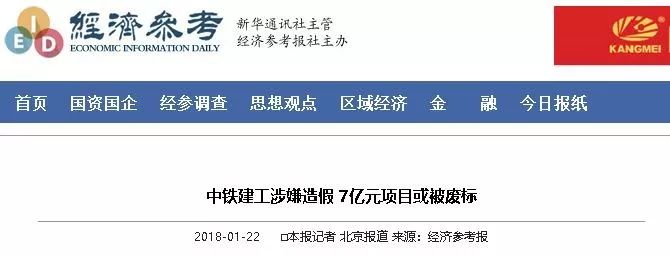 1月22日,《经济参考报》刊发题为《中铁建工涉嫌造假 7亿元项目或被废标》的调查文章。